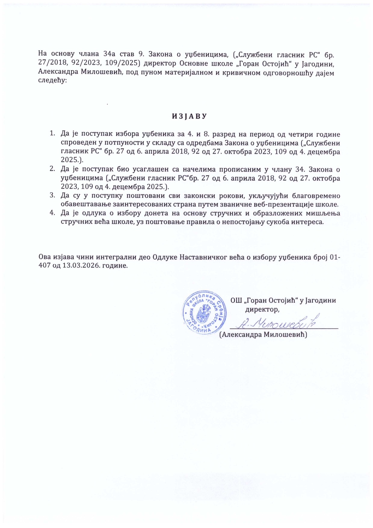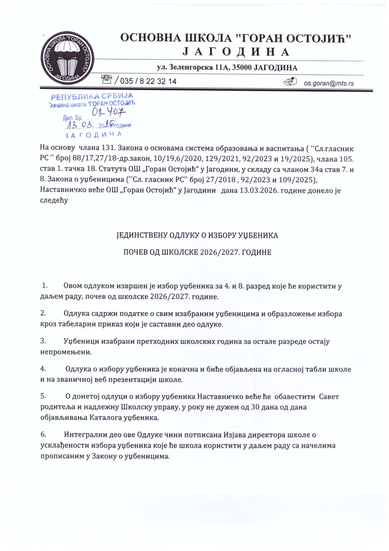 Одлука о избору уџбеника