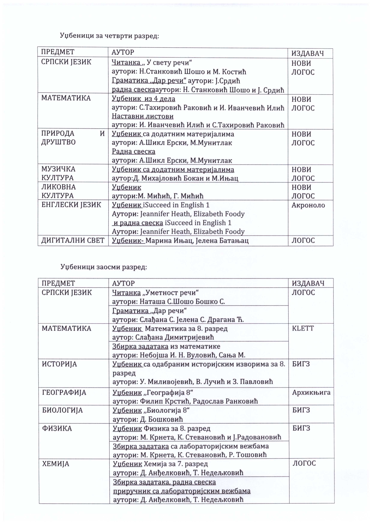 Наставничко веће је донело одлуку о избору уџбеника почев од 2026/27 године